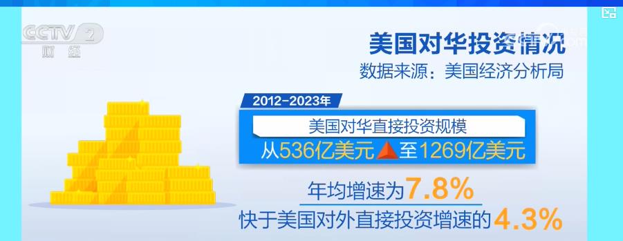 专家表示,最近十年,美国对华投资的规模持续扩大。据美国经济分析局的数据,2012—2023年,美国对华直接投资规模从536亿美元上涨至1269亿美元,年均增速为7.8%,快于美国对外直接投资增速的4.3%。投资结构也不断优化,2013—2023年,美国制造业对华投资中,计算机电子产品制造业、运输工具制造业分别增长2.6倍和2.7倍。专家表示,在经济全球化的背景下,供应链的开放合作已成为企业的内在需求,无论是传统领域还是新兴产业领域,中美供应链都深度嵌套。
