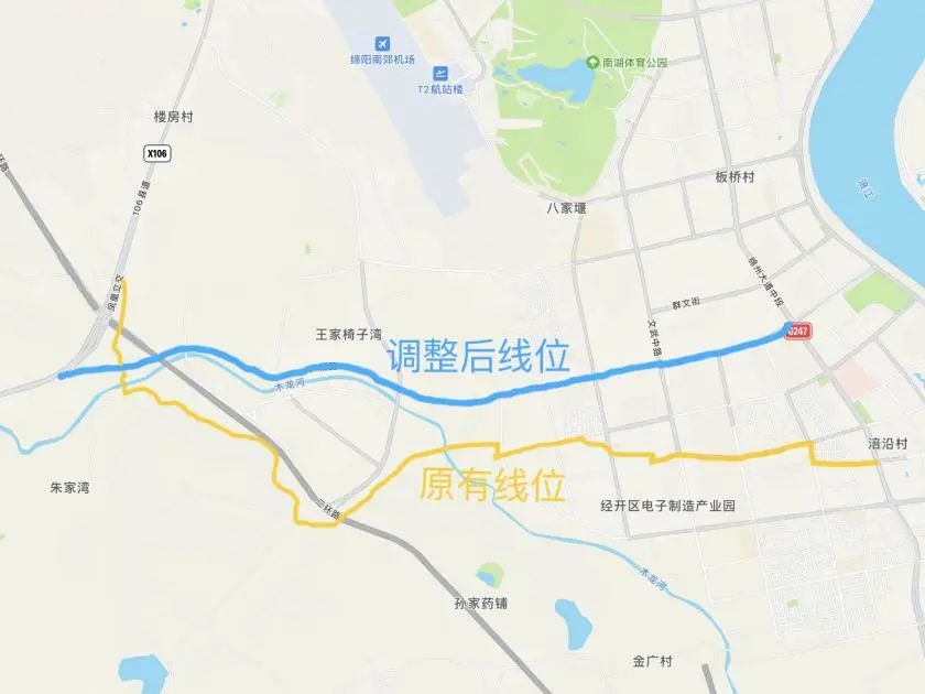 原S416线涪城区塘汛镇至吴家镇段穿越主城区里程8.6公里,受两侧房屋限制,已无条件进行改造提升。根据实际情况将省道调整为利用市政道路(三江大道接广福路,6.9公里,一级公路),路线调整后优化了省道路线走向,实现了省道等级提升。