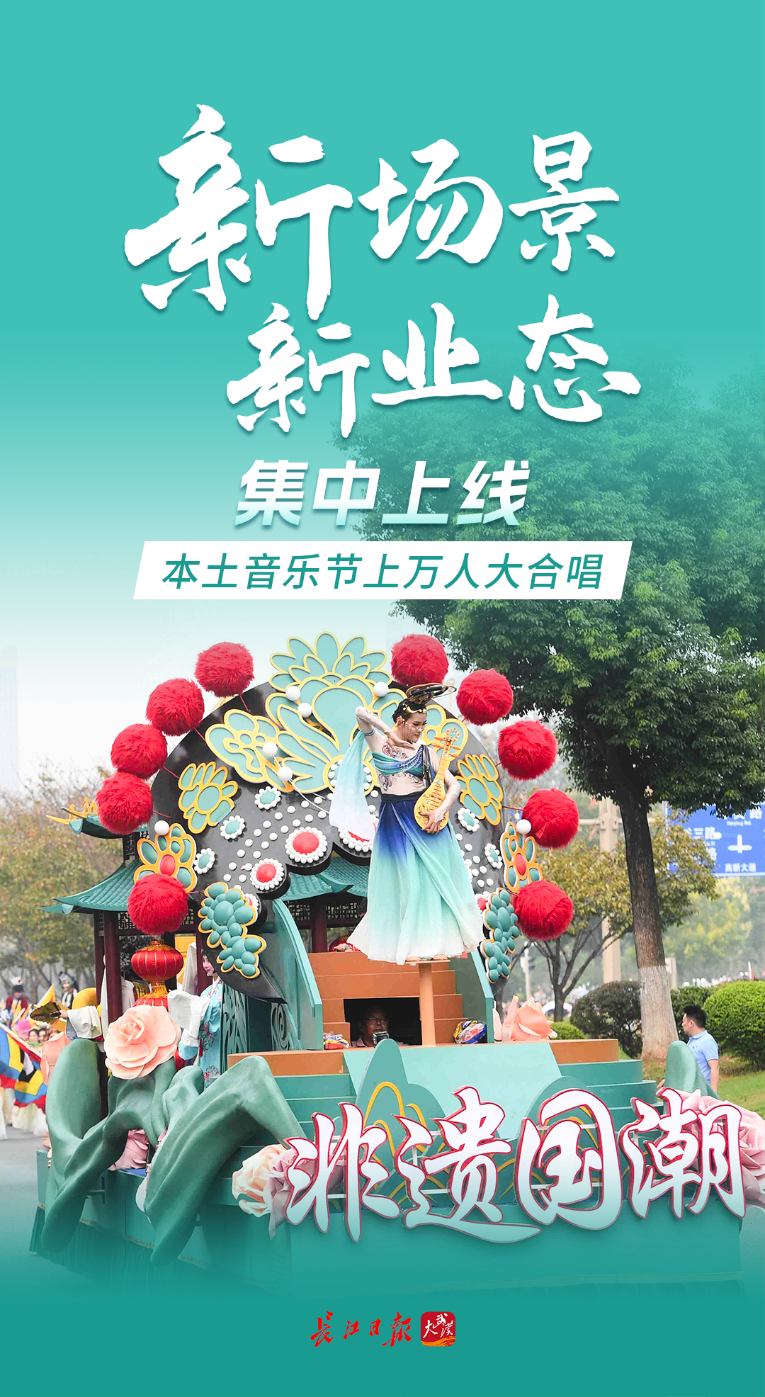 “河山添锦绣——文旅IP武汉城市大巡游”于10月1日在武汉光谷开游,23台主题花车,融合全国各地特色民俗、非遗项目的38家国内外顶尖演艺团队联袂献艺,近10万市民游客现场观看,来鄂游客大呼“来得值”。