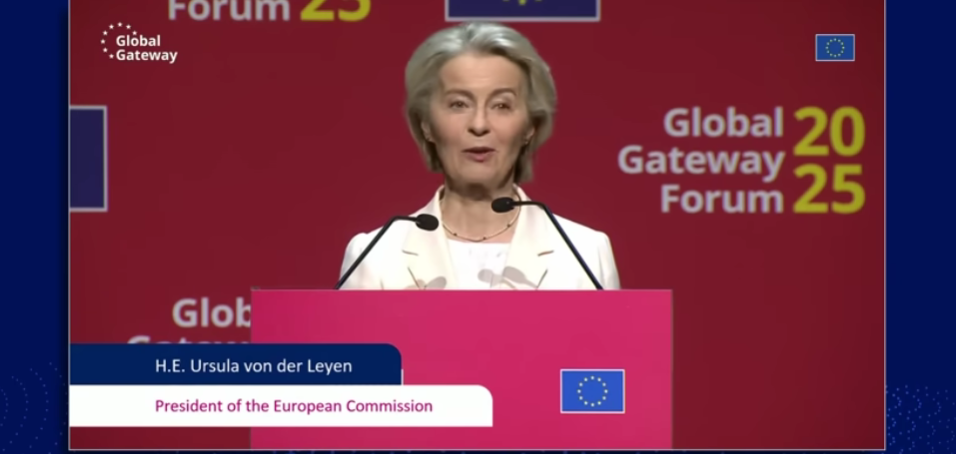 欧盟委员会主席冯德莱恩为论坛揭幕,并在周四的主旨演讲中宣布,欧盟预计到2027年为“全球门户”计划募集超4000亿欧元投资,加大对全球南方国家的投资力度。