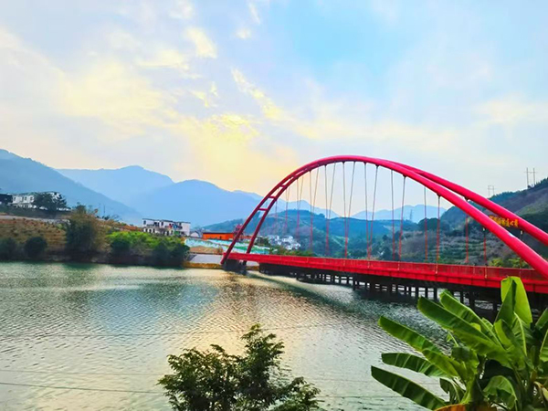 新丰旅游度假村,依山傍水,生态环境优越,空气清新宜人,设施齐全,服务细致周到,是远离都市喧嚣、回归自然怀抱的理想胜地。蜿蜒的驮娘江穿村而过,巧妙地将村庄划分为两区四组两半岛,设有三个游览区,并通过两座别具一格的吊桥相连。新丰水电站的落成,在高峡之间营造出一片宁静的平湖,高耸的青山与辽阔的湖面交相辉映,使新丰村宛如镶嵌在一幅绝美的山水画卷中,吸引了众多摄影爱好者纷至沓来。