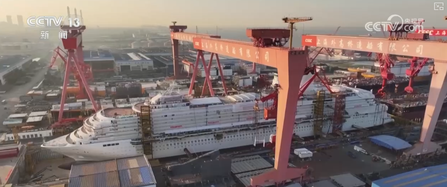 “十四五”期间,中国造船业交付了30万吨级超大型原油船、双燃料动力汽车滚装船、首艘国产大型邮轮爱达·魔都号等一批高端船型。目前,在上海外高桥造船,第二艘国产大型邮轮建造进度已经达到85%。