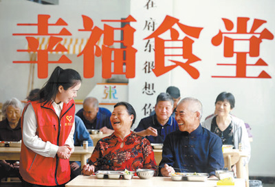 山东省临沂市郯城县府东社区幸福食堂,老年人正在就餐。张春雷摄(人民视觉)