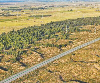 “十四五”时期,“三北”工程攻坚战取得阶段性成效。图为内蒙古库布其沙漠北缘锁边林带。新华社记者 李志鹏摄