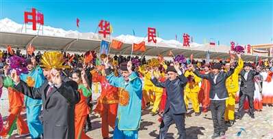 民族团结是我国各族人民的生命线,中华民族共同体意识是民族团结之本。图为新疆塔什库尔干塔吉克自治县,穿着多民族服饰的村民在进行展演。新华社记者 徐宏岩摄