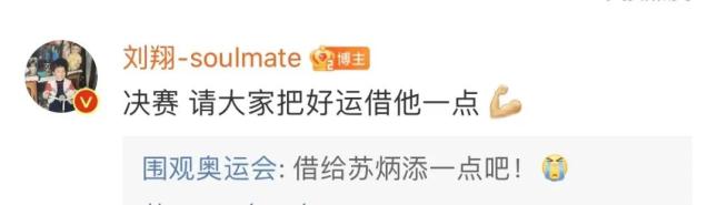 此前,刘翔曾在网上发文:“决赛,请大家把好运借他一点”。