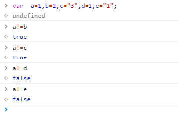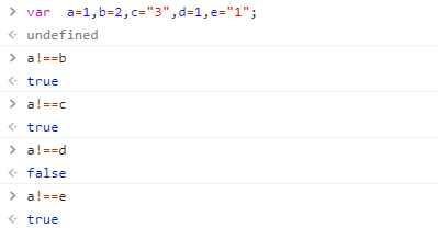 !== 不会进行类型转换,在比较时除了对值进行比较以外,还比较两边的数据类型, 它是恒等运算符===的非形式。