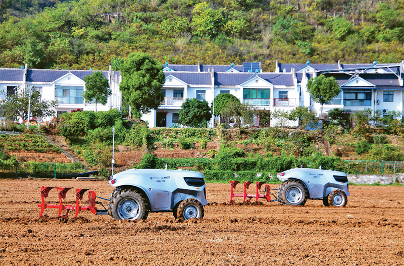 党的十八大以来,我国农机装备水平和农业机械化水平大幅度提升,大型大马力农机装备研制取得突破性进展。图为2024年10月28日,在湖北省十堰市郧阳区柳陂镇卧龙岗村,无人驾驶的智慧农机在田间作业。该农机具备数据采集、实时追踪、轨迹查询等功能,配备相关农具可进行耕、耙、播、收等智能化作业。 人民图片 曹忠宏/摄