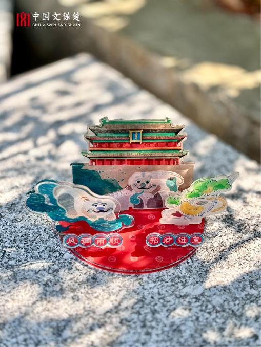 北京前门原正阳桥遗址发现的镇水兽为明代遗存,名为“趴蝮”,是古代神话中“龙生九子”之一,象征着人们祈求镇水消灾、护佑平安的愿望。镇水兽立牌摆件将神兽发掘地与神兽镇水消灾、招财纳福的象征意义融合体现,结合AR交互技术和可拆卸亚克力立牌工艺,实现创新交互、情感共鸣和美观装饰的三重作用,传递新颖的视觉和文化享受。