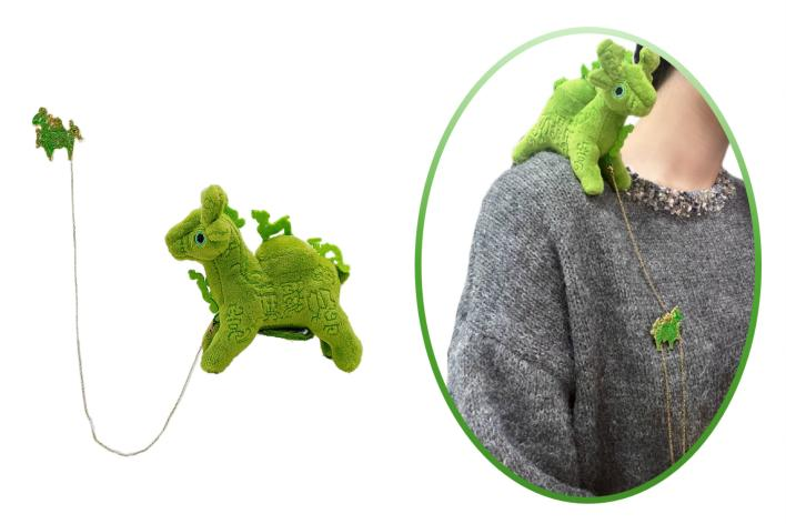 麻辣烫玩偶创意源于甘肃天水美食麻辣烫,因其热辣鲜香的口味和独有的地方食材,以及独特的穿串模式而火遍全国,是甘肃知名美食名片,食材荤素搭配,把可爱全炫嘴里!“绿马奔奔”和“绿马跳跳”作为绿马玩偶的两大主角形象,凭借原创的设计,展现出萌趣立体、可爱十足的特点,不仅拿捏住铜奔马俏皮生动的正面神态,更有独特创新的站姿令人忍俊不禁。绿马玩偶代表着积极乐观的精神,设计寓意就是传递简单真实的快乐和满满的“绿色出行”祝福。