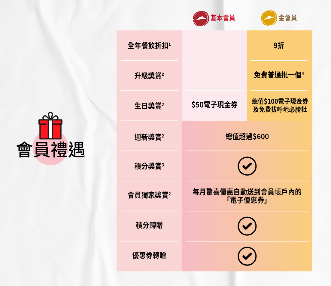 8. 升級成為金會員可獲電子優惠券一張以換領夏威夷風光必勝批(普通)一個,延續金會員會籍不會獲得獎賞。
