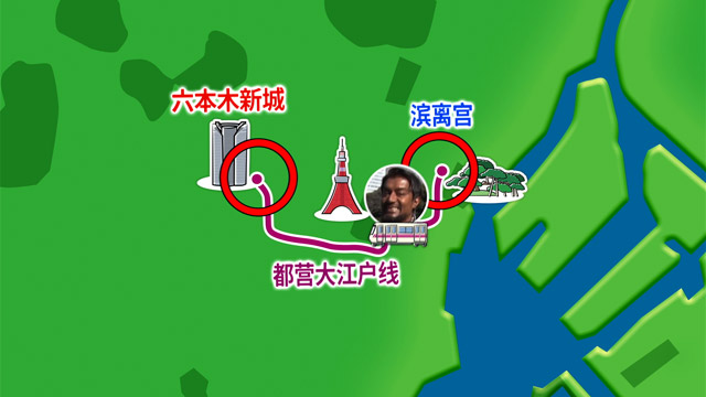 路人 : 坐到六本木站下车。