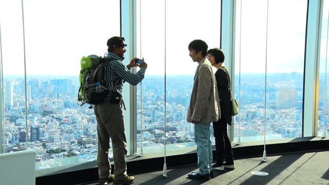 他来到了很受欢迎的“东京城市观景”展望台。