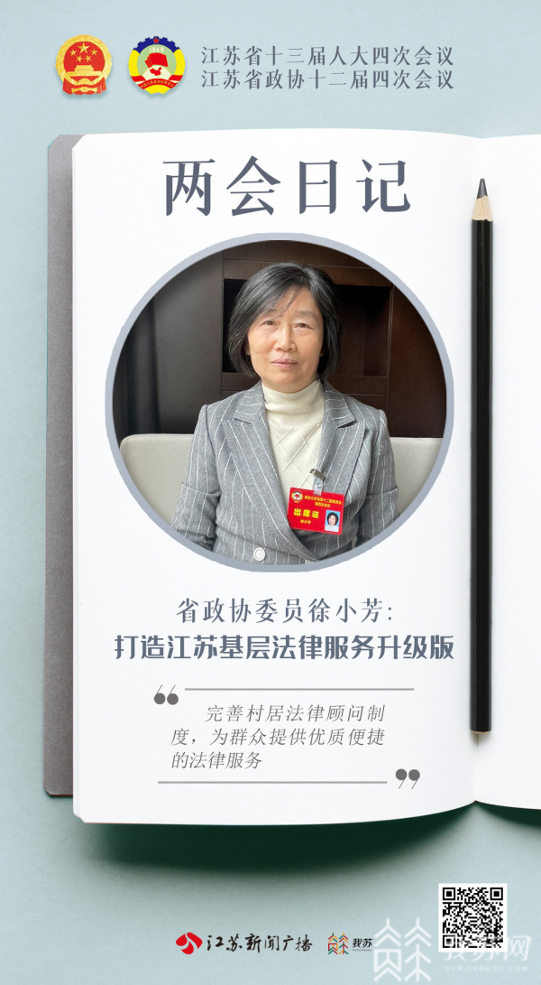 我欣喜地看到,省政府今年的民生实事中明确村(社区)法律明白人培育工程,为全省90000个网格每个网格培育1名“法律明白人”,打造江苏基层法律服务的升级版。相信这将为群众提供更为优质便捷的法律服务,推动区域治理法治化。