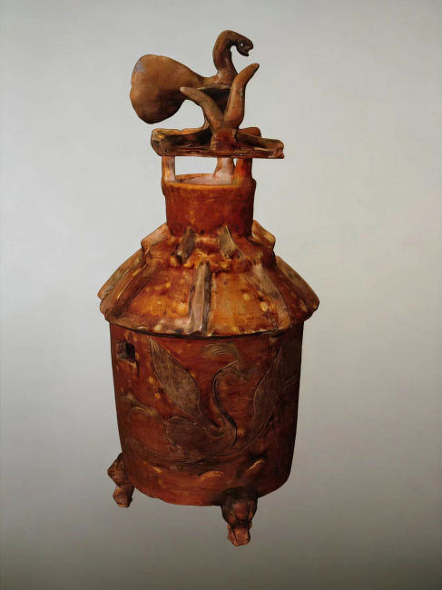 汉黄釉绿彩堆塑朱雀陶仓 中国农业博物馆供图
