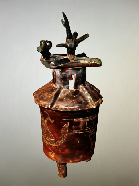 汉酱釉绿凤纹堆塑动物陶仓 中国农业博物馆供图