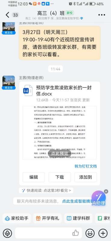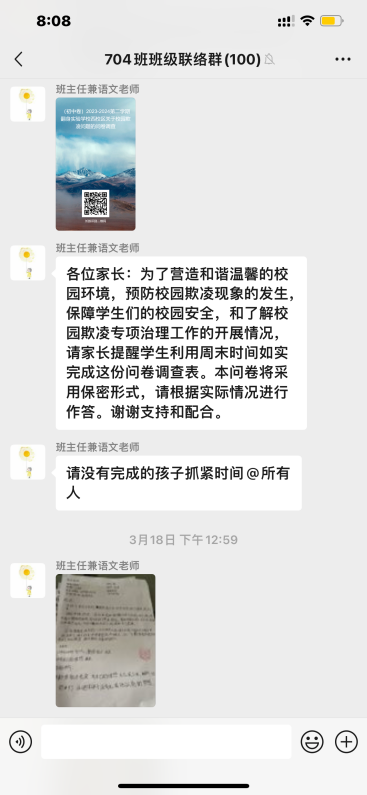 防范校园欺凌,离不开家庭的支持,只有形成家校合力,实现家校共育,才能真正实现校园的和谐美好,让每一个孩子都能在阳光下无忧无虑地成长。翻身实验学校(西校区)通过家访、致家长的一封信、问卷调查等形式,增进家长对校园欺凌的认识,引导家长对孩子多点关心多点爱,倡导家校联动,保持密切沟通,共同为孩子创造一个零欺凌的友好环境。