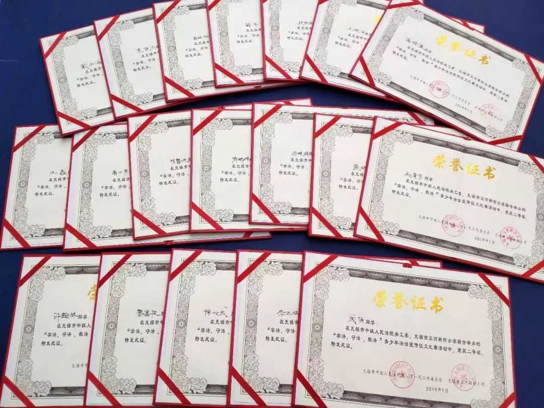 近日,无锡市中级人民法院和无锡市五河新村小学联合举办的“学法守法 敬法”法治征文比赛中,共有54位同学获奖。