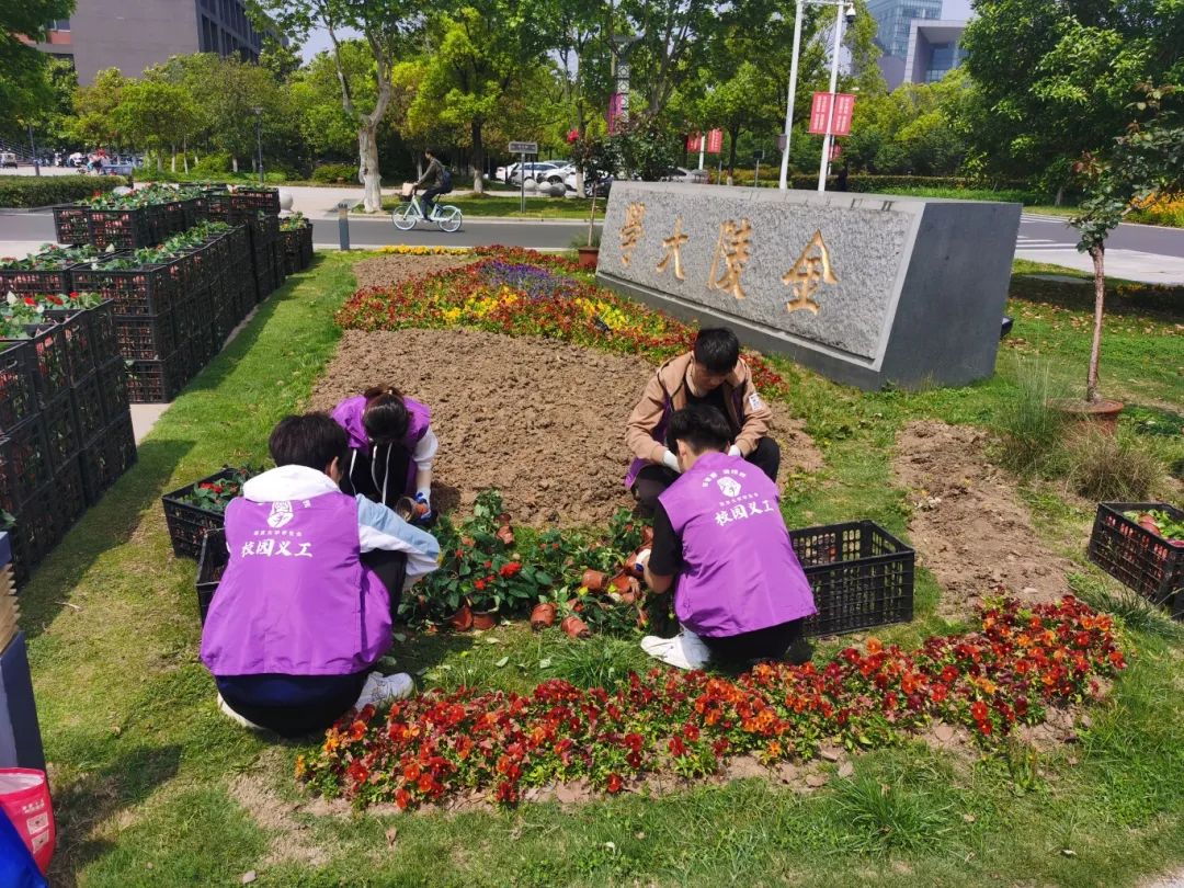 南大学子们也在为校园春日的绚丽和生机出一份力。他们通过校园生态义工和大学生劳动教育实践项目的形式,参与到花卉植物养护工作中;修习创新创业课程《园艺植物栽培与插花设计》,通过理论教学与课程实践了解更多关于园林绿化相关的知识。