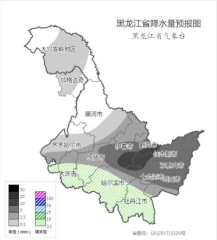 预计20日-21日黑龙江自西向东有一次雨雪天气,主要降水时段出现在20日下午到21日白天,部分地区有湿雪。伊春南部、绥化东北部、哈尔滨东北部、鹤岗、佳木斯、双鸭山、七台河、鸡西东部有雨夹雪转中到大雪,降雪量4毫米~6毫米,其中伊春南部、哈尔滨东北部、鹤岗、佳木斯西部局部有大到暴雪,最大降雪量可达13毫米;其他地区以雨转雨夹雪或者转小雪为主,其中伊春北部、绥化中部、哈尔滨北部偏西地区、鸡西西部雪量可达小到中雪程度。降水同时大部地区有5级~6级风,阵风7级;雪后气温下降2℃~4℃,局地下降4℃~6℃。