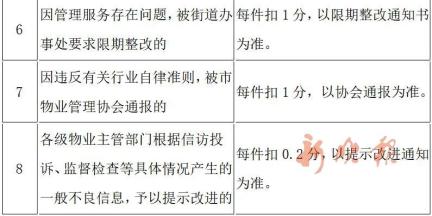 参与物业项目招标时给予减3分的信用减分;