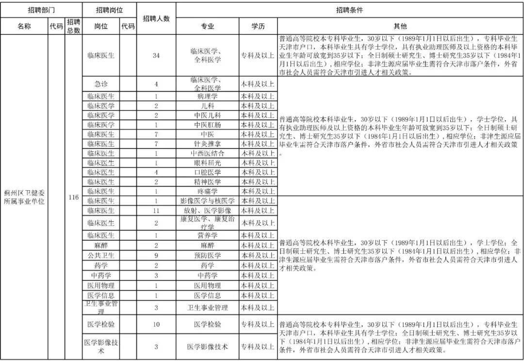 宝坻区因发展需要,面向符合职位要求的社会人员及2019年应届毕业生(不含现役军人)公开招聘63人。区生态环境局、区新闻中心公开招聘编外人员50人,天津市宝地旅游发展有限公司、天津冠城投资发展有限公司公开招聘国有企业工作人员13人,具体岗位及要求如下: