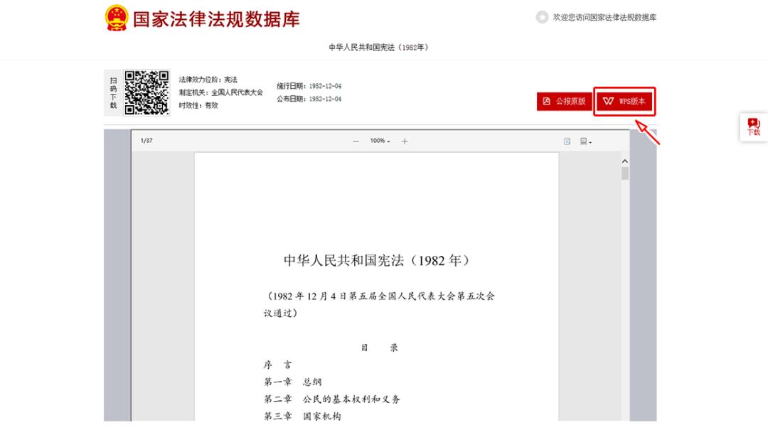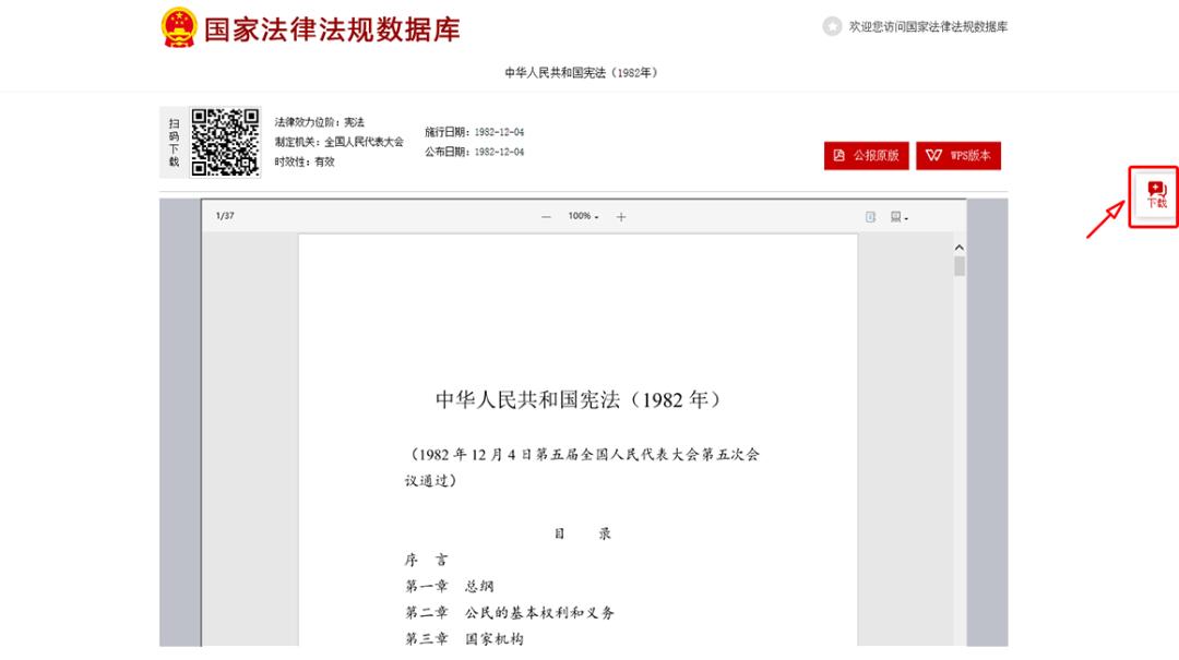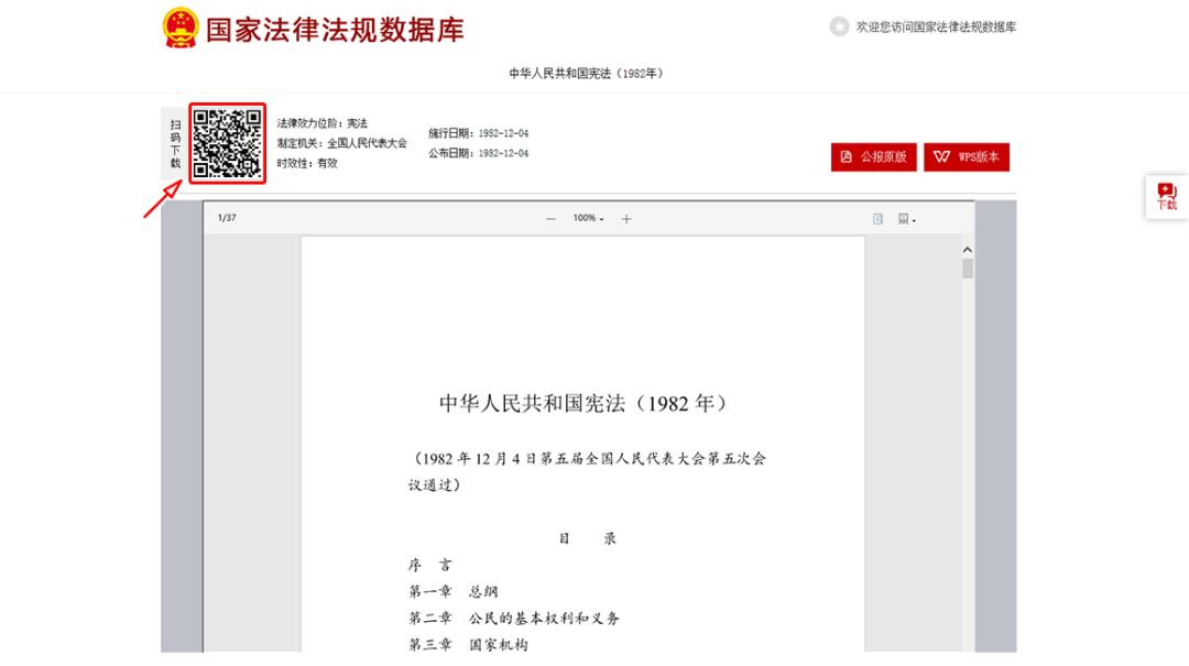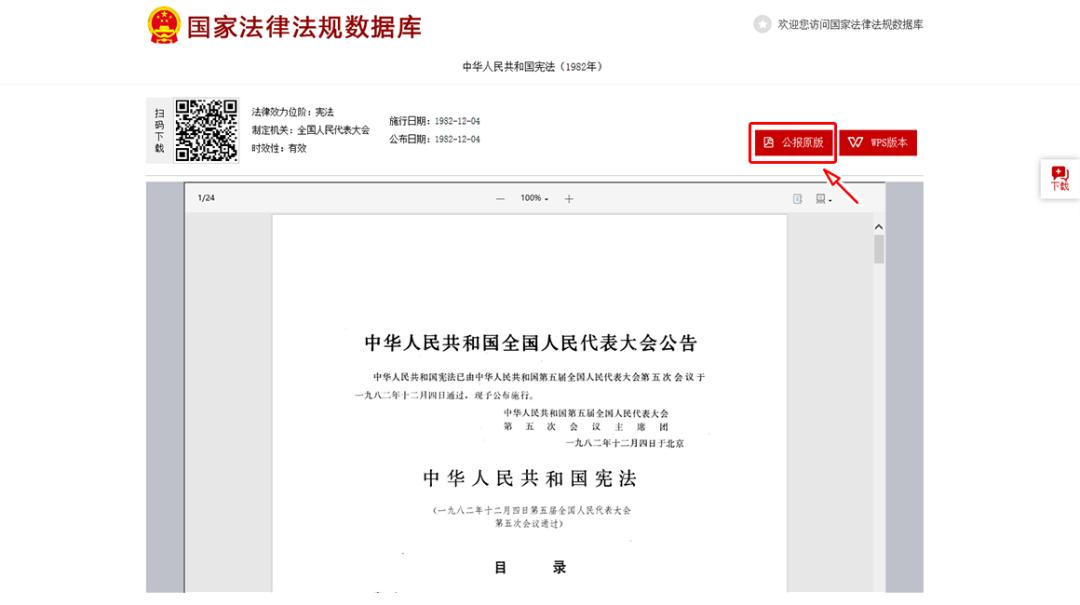 点击“指定法律法规”进入详情页,再点击“公报原版”按钮,显示对应公报原版法律法规。(参考图3.5)