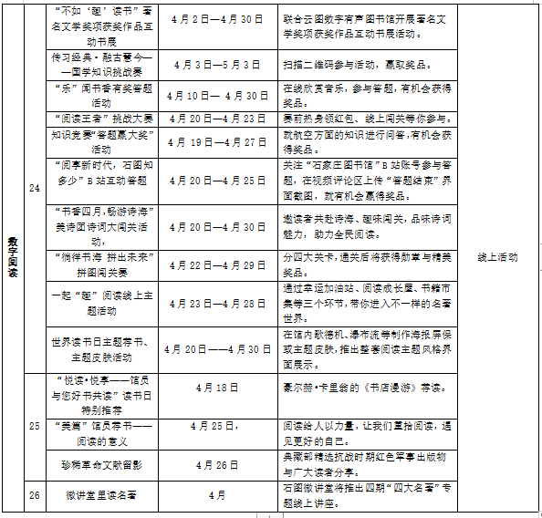 活动地点:石家庄市图书馆网站及微信公众号