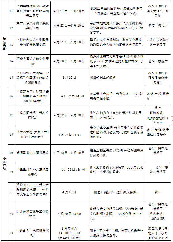 活动地点:石家庄市图书馆(老馆)一楼大厅