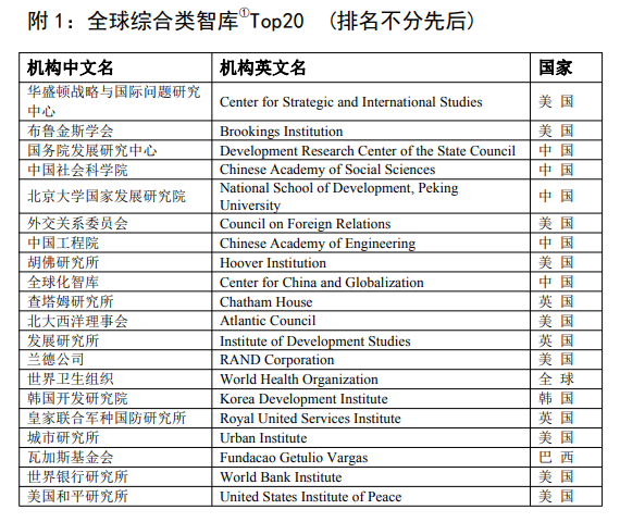 摘自《全球智库影响力评价报告2022》
