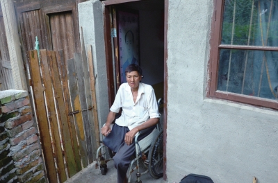 今年57岁的毛玉俤身材瘦弱,身穿一件发黑的白衬衣,坐在轮椅上。邱巧媚穿一身黑衣在昏暗的厨房里用土灶做饭。毛玉俤的女儿被他哥哥接到家里代为照顾。邱巧媚和毛玉俤依靠国家给予的低保工资和残疾人补贴过活。