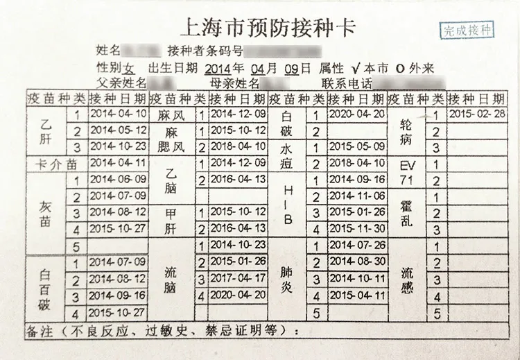 小学新生的家长们要注意,一定要领取预防接种卡。