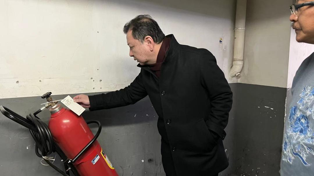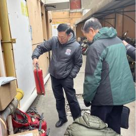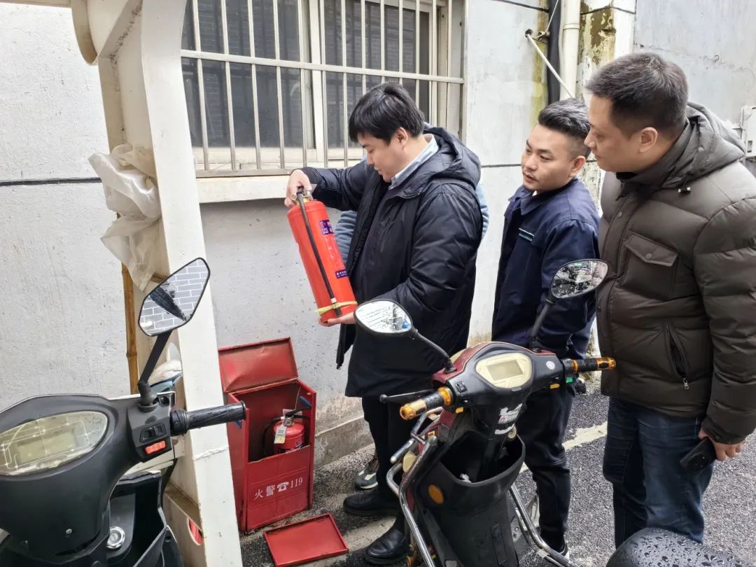 检查组一行仔细排查了基地内的消防设施设置情况、电动自行车棚管理情况,并进入值班宿舍查看宿舍内电器使用和电器线路等。