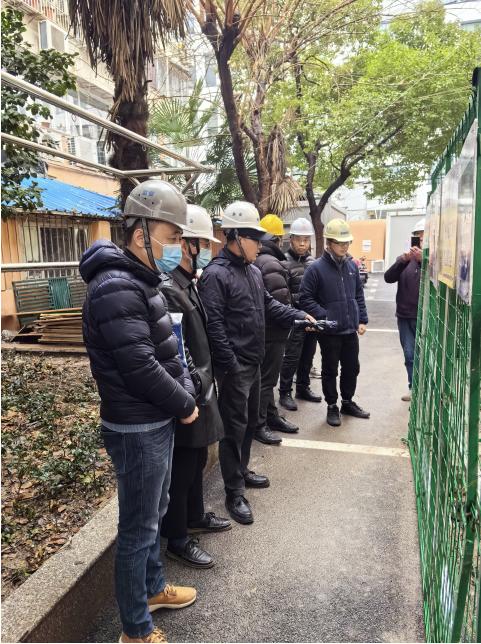 检查组一行详细了解了加梯项目整体实施状况,认真听取了现场人员的介绍,重点查看现场环境状况、围挡安置、消防安全等情况。