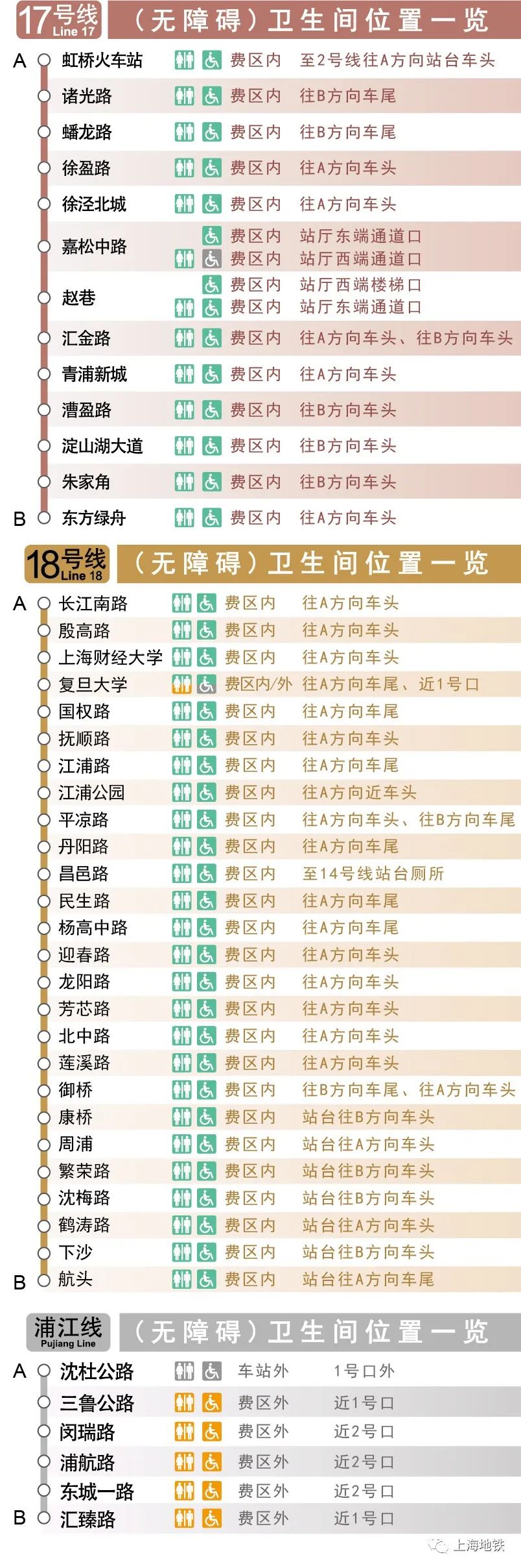 13—18号线、浦江线各站点卫生间位置信息
