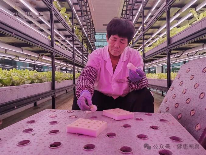 29日,唐秀英在“植物工厂”进行分苗操作。新华社记者 田策摄