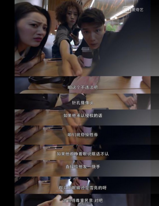 戴曦为帮助闺蜜获得权益,在律师男友麦飞与对方律师罗槟见面谈和解时,设置针孔摄像头;麦飞也表示若对方不承认侵权,就把小视频放到网上,让公众舆论影响法官审判。