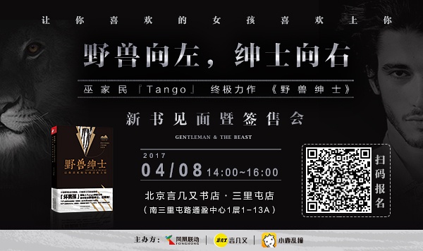 或许你天生并不幽默,甚至有些古板。在远离故乡的城市做着并不热爱的工作,没有成就,却也不想回家,面对感情,并不潇洒,还有些懦弱自卑。但只要你有意识地去寻找“追爱”这门游戏的规则,而不是待在原地,期望别人主动来发现你、爱上你,你就能够得到一切看似本不应属于你的东西,你会离人生终极的幸福越走越近。巫家民《野兽绅士》北京新书见面暨签售会,现场教你变身野兽绅士,让你喜欢的女孩喜欢上你!