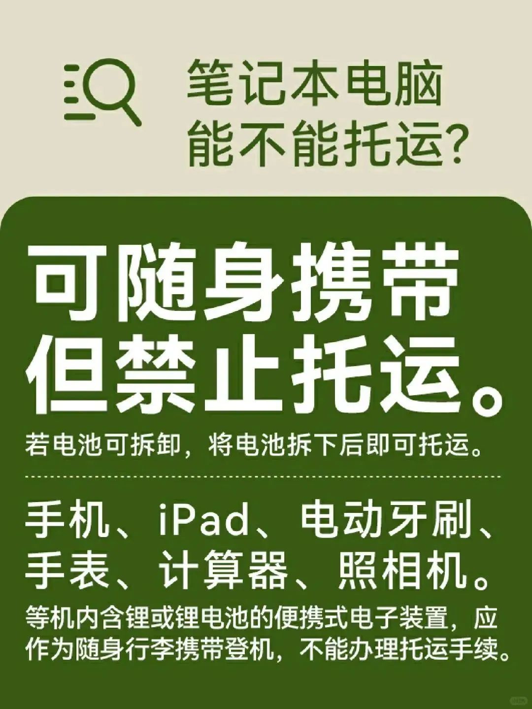 标志清晰、单块不超过100Wh、20000毫安以内——可随身携带但禁止托运