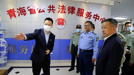 图为青海省军地领导参观调研惠军律师事务所为军服务成效。
