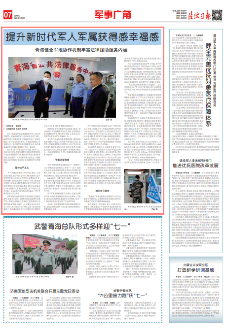 法治网首页>>   军事广角>>滚动图片>>     提升新时代军人军属获得感幸福感   青海健全军地协作机制丰富法律援助服务内涵   发布时间:2022-07-06 06:30 星期三   来源:法治日报
