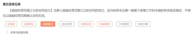 民法典重点法条类案裁判规则系列173:关于超越经营范围订立的合同效力的相关裁判规则5条