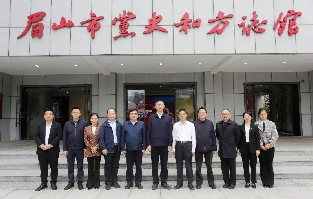 2023年11月10日,中志办党组书记、主任崔唯航(中)调研眉山史志馆后合影(眉山市党史和地方志中心 供图)