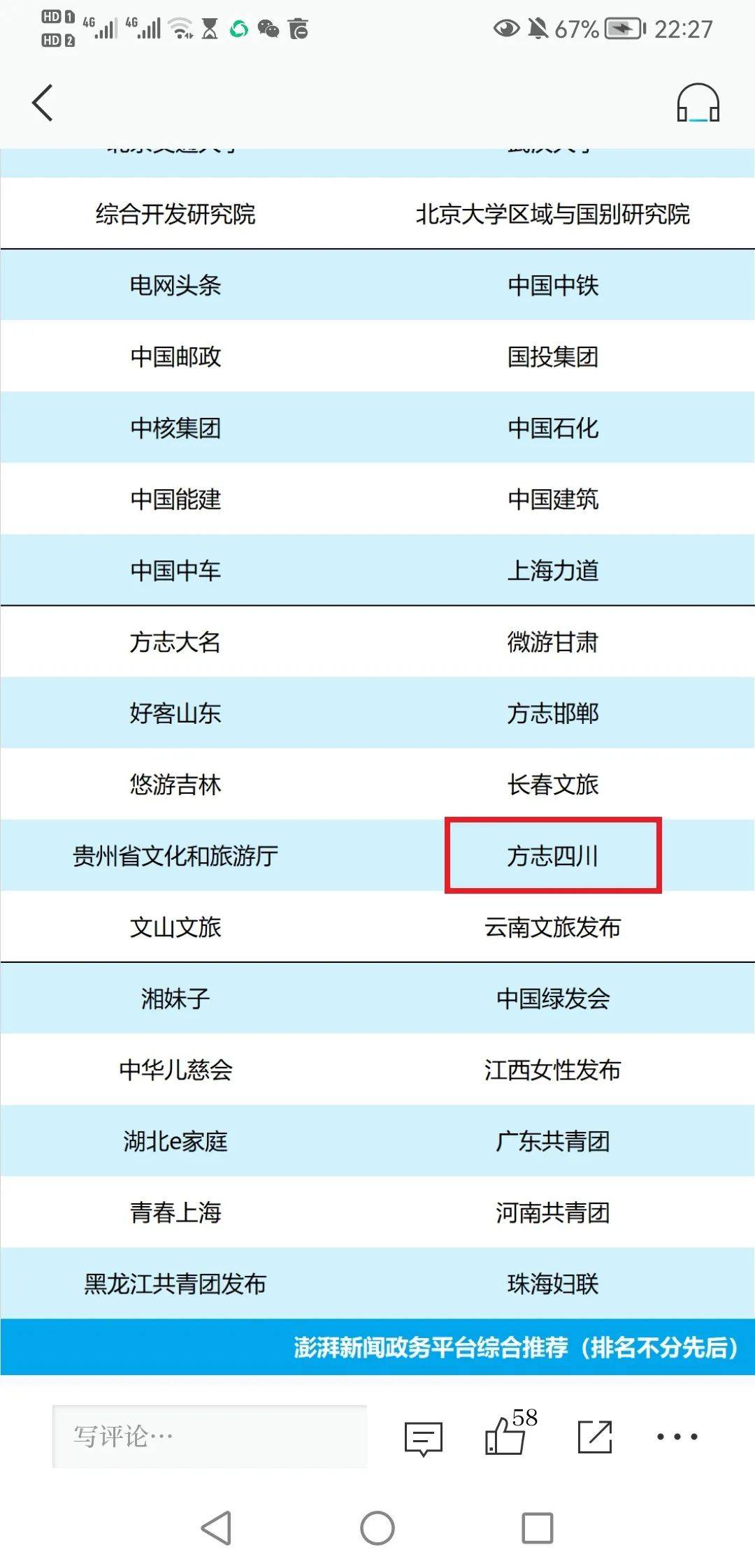 2023年1月,方志四川入围“澎湃政务号2022年度传播案例”。