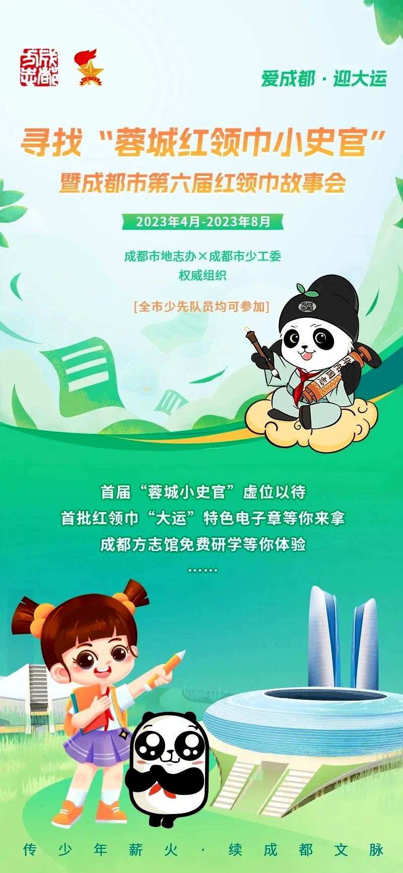 2023年4—7月,成都开展“爱成都·迎大运”寻找“蓉城红领巾小史官”活动。