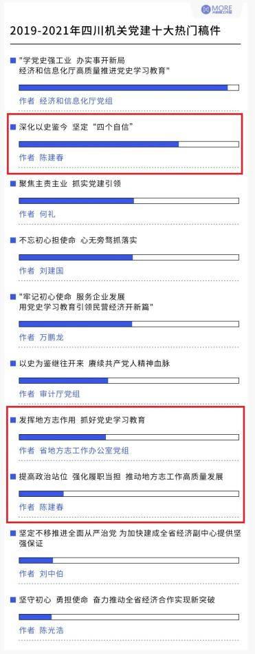 2019-2021年四川机关党建10大热门稿件(图片来源:2022.5.13日川观新闻报道《说话算数|四川机关党建传播力数据分析报告》)