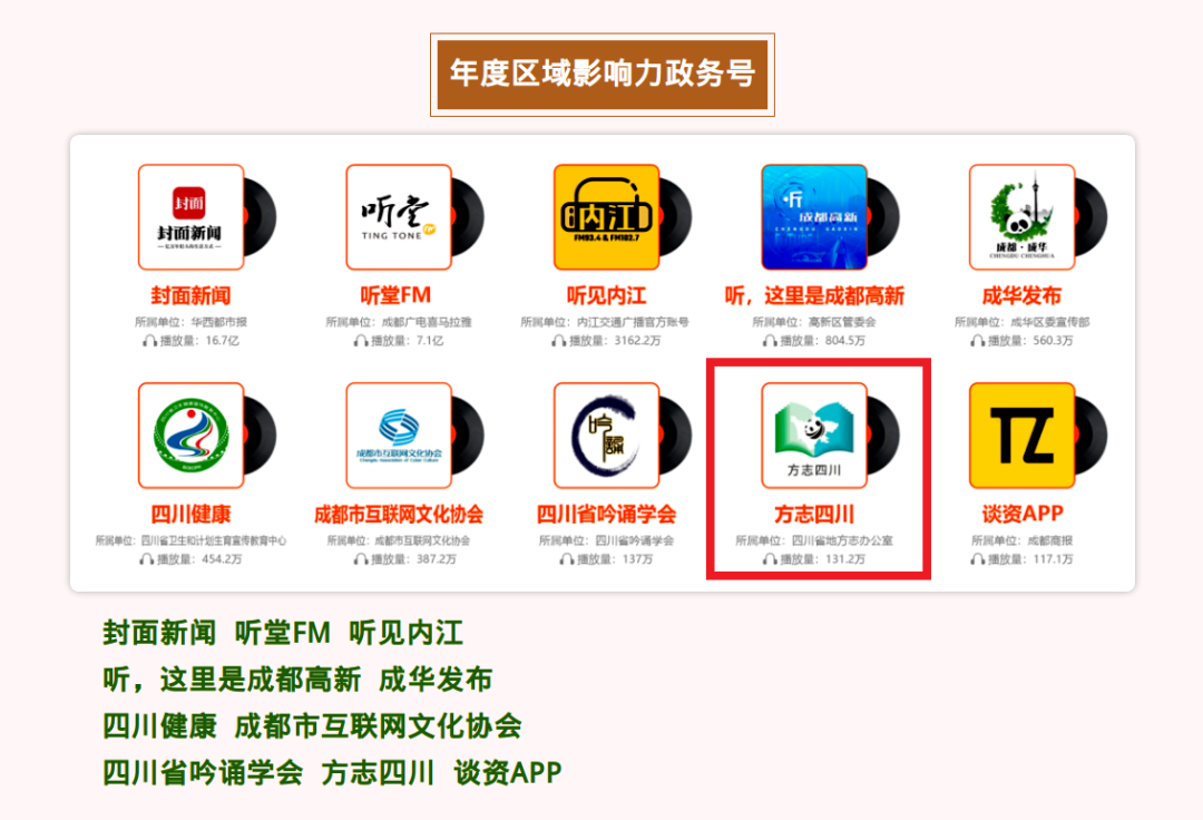 “方志四川”电台获评喜马拉雅平台2022内容阅读收听榜单之“年度区域影响力政务号”