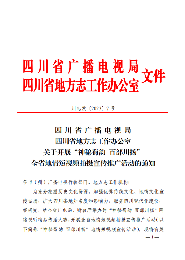 四川省广播电视局、四川省地方志工作办公室联合开展“神秘蜀韵 百部川扬”全省地情短视频拍摄宣传推广活动