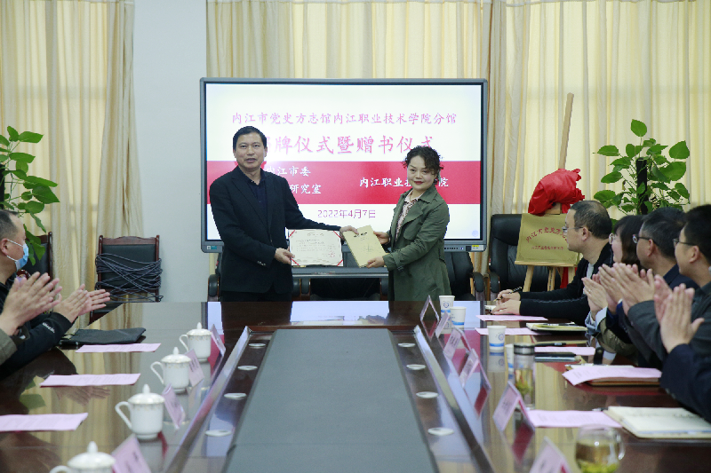 2022年4月7日,内江市党史方志馆内江职业技术学院分馆揭牌(内江市委党史地方志研究室 供图)
