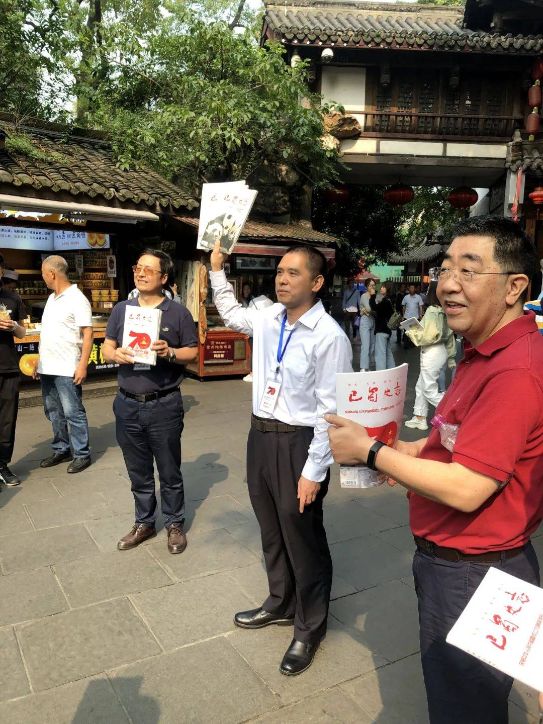 2019年9月28日,四川省地方志办、成都市地方志办、武侯区地方志办在成都锦里宣传推介《巴蜀史志》庆祝中华人民共和国成立70周年特刊和纪念大熊猫科学发现150周年专刊(李美 摄,图片来源:四川方志图库)